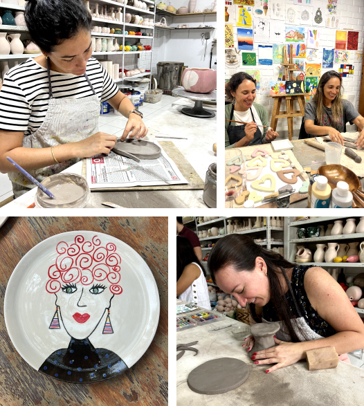 *Todos los materiales están incluidos: Arcilla, herramientas, quemas de piezas en el horno, esmaltado de piezas, engobes y esmaltes para pintar arcilla.